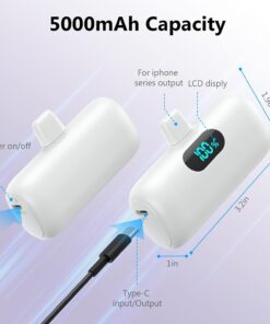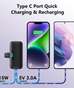 【Dual Input and Smart LCD Display】Dual Input(type-C 5V/3.0A+ Other 5V/2A). you can use your type-C Cable(Package Included) or iPhone cable to charge this mini power bank. Smart LCD display make it easy to know how much battery is left.(Tips: The USB-C charging port support for both input and output.)