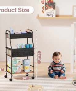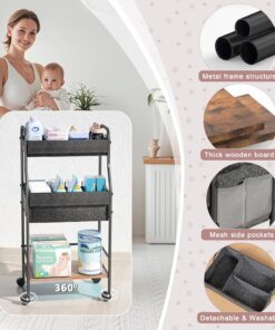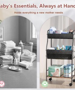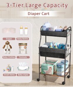 3-Tier Rolling Baby Diaper Caddy Cart with 3+2 Dividers & Locking Wheels, 31″ H Large Capacity Metal Frame Baby Storage Organizer Nursing Cart for Diapers, Wipes, Clothes, Toys