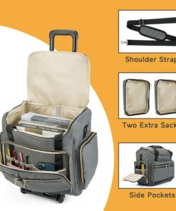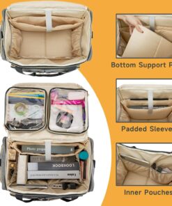 Arxus Rolling Teacher Bag with 4 Wheels, Art Tote Bag for Women with Detachable Dolly, Heavy Duty Briefcase with Padded Sleeves for 15.6” Laptop