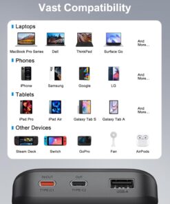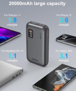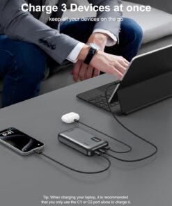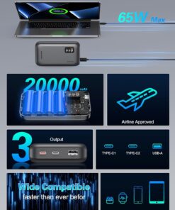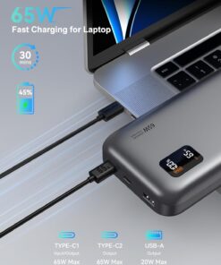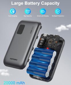 [65W Super Fast Charging]: Dual USB C ports can achieve PD 65W fast charging speed, which means it can “quickly” charge your laptop via USB-C, allowing you to continue working efficiently without relying on an outlet. It supports all fast charging technologies and can quickly charge your electronic devices such as laptops and smartphones via PD technology.[Charge 3 devices simultaneously]:Asperx Laptop Power Bank is equipped with 2*65W USB C ports and a 20W QC USB-A port, this power bank fast charging can charge 3 devices at the same time, with PD 3.0 output, which is faster than 2.0 output (Note: using multiple ports at the same time may affect the charging speed.When charging your laptop,recommended that you only use the C1 or C2 port to charge your laptop.)[USB-C input and output convenience] The USB-C input and output ports can not only efficiently provide 65W output to your devices, but also quickly charge the battery pack itself with 65W high-speed input power when used with an adapter above 65W, simplifying your charging setup.(Note: Single USB C port can provide up to PD 65W speed, and the USB-A port 20W Max.)[Essential for air travel: 20,000mAh capacity]: The 20000mah power bank has enough capacity to keep you fully charged during your trip. It can charge your mobile phone and other devices multiple times. Perfect for travel, business trips, camping or other outdoor activities. The high-quality lithium-ion batteries contained in the ASPERX USB battery pack help to charge safely and prevent overvoltage, overcharging, overcurrent, short circuit, etc. Approved by airlines, safe for travel.[LED Smart Display]: This Laptop portable charger is equipped with a smart LED display that displays real-time information such as battery level, output or input power. And remind you of the charging status. Compared with the traditional small screen, the display content is more detailed and intuitive, and the use experience is better.[Wide Compatibility]: This 65W power bank fast charging is compatible with almost all USB C and USB A power supply devices, supports PD3.0, QC3.0, SCP, AFC,and can quickly charge your iPhone 16/15 14 13 12, 11,MacBook Pro, Dell XPS, SteamDeck, SE, XS, iPad Pro, Galaxy S24, Google Pixel, etc.[You will get]: 65W USB C portable charger*1, 0.6m/2ft 65W USB C to USB C cable*1, user manual*1. We provide pleasant customer service 24 hours a day, 7 days a week, and provide 24-month support. If you have any questions, please feel free to contact us.