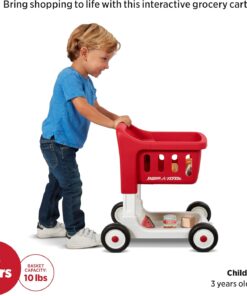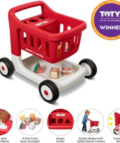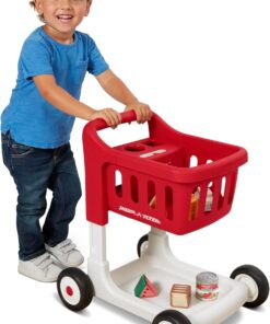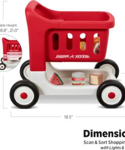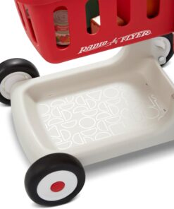 Bring shopping to life with the Scan & Sort Shopping Cart with Lights & Sounds! This shopping cart features Safety Resist Clickers for your little shopper, which provide stability and resistance as the cart is pushed. This shopping cart features 3 adjustable heights and grows with your child, ensuring years of fun! The cart has cut outs for shape sorting, and the 6 included play food items double as shapes to learn with. With an LED light sensor, kids can scan their groceries and experience music, lights, and sounds for an imaginative shopping experience. The volume for music and sounds is adjustable. 3 AAA batteries are required, batteries included. Shopping cart basket can hold up to 10 lbs. Recommended for 1+ years. Perfect for use in playrooms, living rooms, nurseries, or on smooth indoor floors like hardwood or tile. It’s also compact enough to bring along to grandma’s house or take on a family weekend away. Great for toys for 1 year old boy, baby toys 6-12 months, baby girl gifts, one year old girl birthday gifts, toys for 1 + year old girl, a baby chair, infant toys, and a walker for baby boy 6-12 months. If you’re looking for toys for 1 year old girl, toddler girl toys, a one year old boy birthday gift, toys for girls, toys for 1 + year old boy, first birthday gifts for girls, or 1st birthday girl gifts, you’ve found the perfect toy. It’s the best for baby girl toys, gifts for 1 year old girl, first birthday gifts for boys, learning toys for ages 0-2, 1st birthday gifts boy, gifts for 1 year old boys, and 6 month old toys. Ideal for ride on toys for toddlers 1-3 boys, 9 month old baby toys, baby gifts for boys, toddler learning toys, baby gifts for girls, and baby walkers for boys. Whether you’re in an apartment, a suburban home, or traveling, this cart brings everyday pretend play wherever you go. For additional questions, support, or concerns, please contact our customer service team at https://www. radioflyer. com/customer-service/ or 1 (800) 621-7613.