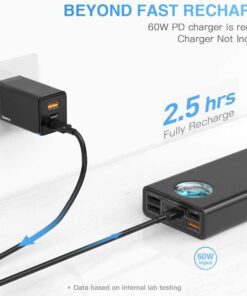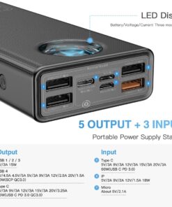 【5-Output+3-Input】Power 5 devices at once (4 USB-A + 1 USB-C port) while recharging itself via 60W PD input (full recharge in 2.5h). Smart power allocation automatically optimizes charging speed for each connected device – perfect for families/teams sharing one power source during trips or outages.