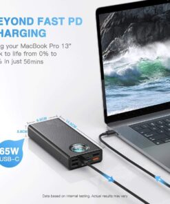 【65W Ultra-Fast Charging】Charge your MacBook Pro 13″ 0-50% in 56 mins with 65W PD fast charging – faster than most laptop power banks. Includes 100W USB-C to C cable for instant use. This is an ideal portable charger for business travelers who need to charge their laptops, iPads, and phones quickly.