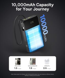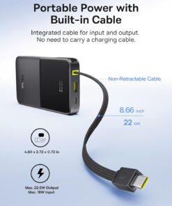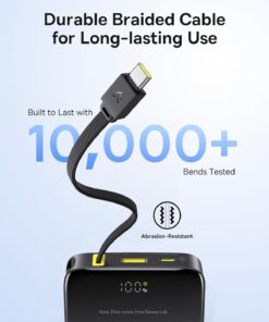 ⚡ 【Grab & Go – No Cables Needed! 】This small portable charger features a built-in, ultra-durable braided USB-C cable. Tested to withstand over 10,000+ bends, outlasting the flimsy cables on cheap power banks. It tucks neatly into the side when not in use, so no more fishing for lost cables in your bag. But here’s the kicker: it doubles as a lanyard! Loop it around your wrist while hiking, attach it to your backpack during a music festival, or carry it like a keychain!