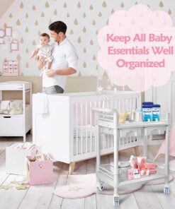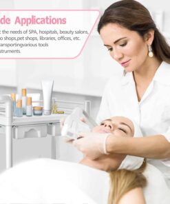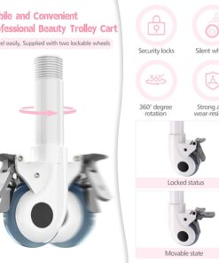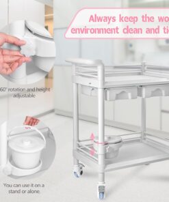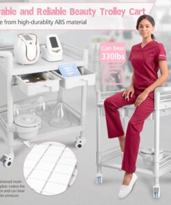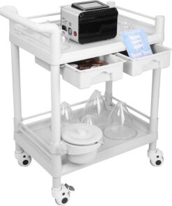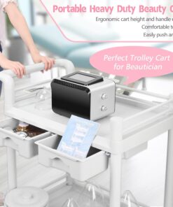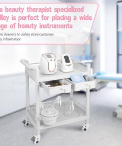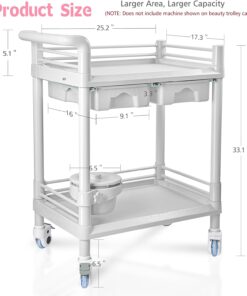 Beauty Trolley Cart with Wheels, Esthetician Cart with Handrail, Bucket and 2 Big Drawer, 2 Tier Heavy Duty Vacuum Therapy Machine Trolley, Load 330lbs, 360° Rotate Silent Wheels