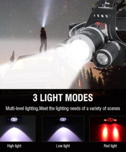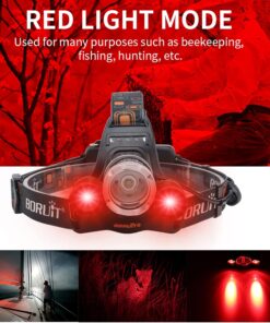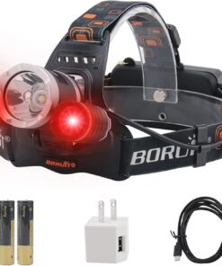 BORUIT RJ-3000 LED Rechargeable Headlamp,3 Modes White and Red LED Hunting Headlamps,Super Bright Tactical Flashlight Red Light Head Lamp for Running Camping Hiking Fishing