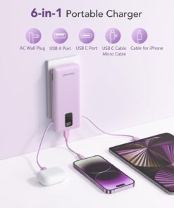 【3 Cables + Plug Built-In】Zero Accessory Design: Integrated USB-C/Micro/ cable for old iPhones, + foldable AC plug. The only most powerful portable charger you need, no separate cables/adapters to carry.