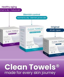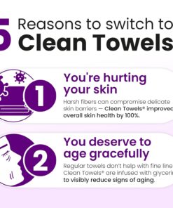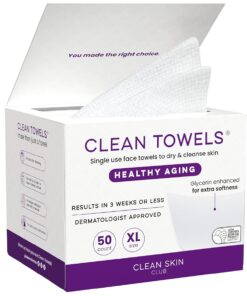 Clean Skin Club Healthy Aging Clean Towels® XL, Smooths Fine Lines Wrinkles & Texture in 6 weeks, Treated for Extra Softness, Disposable Face Towels, Anti Aging Makeup Remover Dry Wipe, 50 count