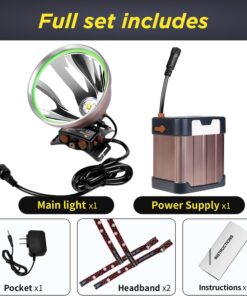 【Ultra-high brightness】: Large-scale updated search headlamps are equipped with led Highlighting light sources. The high lumen spotlight offers up to 3,300 feet (1000 meters) of illumination distance and two different lighting modes.The light cup size of the lamp is 4.25 inch.