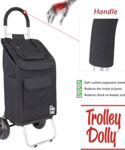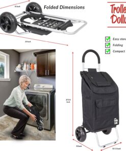 The folding Trolley dolly folds in 1/2 for compact storage. It has a comfort cushion handle that allows you to pull it anywhere. The folding Trolley dolly is designed with 7 compartments/pockets including a beverage holder. The oversized beefy wheels allow for smooth rolling on any surface including cobblestones, sand, stairs or any uneven surfaces. Carry everything from utilities, small groceries, and laundry with this lightweight wheeled push handcart.