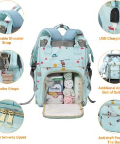 ★【ERGONOMIC DESIGN】Practical Diaper Bag Backpack with USB Charging Port – This is a nappy bag full of details designed for moments when you are out with your baby. Reach out single-handed to side slot for baby wipes, put your cellphone or wallet into the anti-thief pocket in the back; attach the diaper bag to a pram with 2 straps included in the package. We also add USB charging port, so that you can use&charge your cellphone conveniently. (Tips: power pack and Charging Cable is not included )