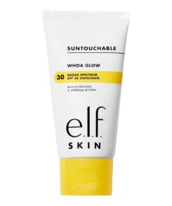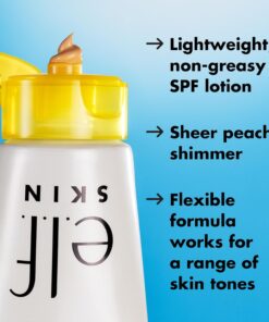 “What is it: A lightweight, broad-spectrum SPF 30 sunscreen that doubles as a makeup primer and leaves skin with a glowing radiance. Why you’ll love it: Lightweight face sunscreen and primer with broad-spectrum SPF 30 Flattering finish with a hint of sheer peach shimmer for a natural, radiant glow Non-greasy Doubles as a hydrating priming lotion to grip makeup for long-lasting wear Infused with skin-loving ingredients like aloe, hyaluronic acid, and squalane Fragrance-free Key Ingredients: Chemical SPF 30: Helps protect skin against UVA and UVB sun rays Aloe Hyaluronic Acid Squalane Prime, protect, and glow. This lightweight face sunscreen and primer hybrid delivers broad-spectrum SPF 30 sun protection, primes your skin for long-lasting makeup wear, and imparts a glowy, sheer finish. With just a hint of peach-tone shimmer, the non-greasy, soothing, and hydrating formula is also boosted with aloe, hyaluronic acid, and squalane. Use it as the last step in your skincare routine before makeup, or wear on its own for a natural glow with a hint of shimmer. All e.l.f. products are free from phthalates, parabens, nonylphenol ethoxylates, triclosan and triclocarban. Proud to be 100% vegan, cruelty-free, and Leaping Bunny Certified. Because kindness is chic.”