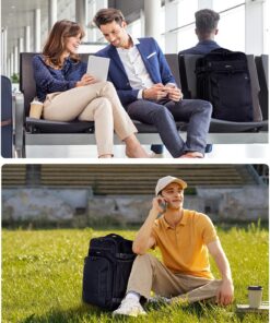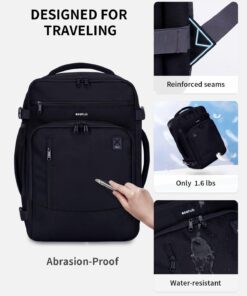 【DESIGNED FOR TRAVEL】: This carry on backpack features a 180° opening for easy packing. The main compartment includes two pockets to keep toiletries and socks organized, with elastic straps to secure your essentials. A dedicated AirTag pocket helps you track your bag easily. Side compression straps compact the bag, while the side handle and trolley sleeve provide multiple carrying options for added convenience.