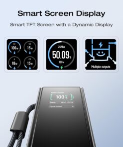 Smart TFT Screen with a Dynamic Display: View your real-time capacity, port power, battery health, temperature, charging cycles, emojis, and more. The crystal-clear TFT display screen lets you check your data at any angle or lighting condition.