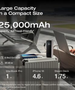 25,000mAh Capacity, Air-Travel-Friendly: Provides ample power support for your laptops, meeting remote work needs for 1-2 days. Can charge your phone 4-5 times, eliminating battery anxiety.