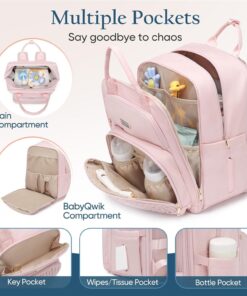 Stay Organized: with the travel diaper bag featuring a smart design that includes 2 compartments and up to 17 pockets, such as 2 insulated pockets, a full-size wipes pocket, a 16-inch laptop pocket, and a security pocket.