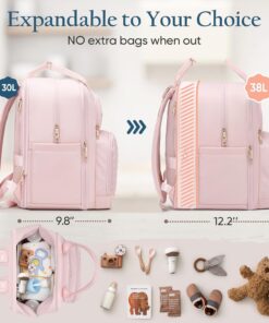 Less Bags, More Space: Check out our NEW extra large baby diaper bag backpack ! It features an expansion zipper that increases capacity from 30L (large) to 38L (extra large) perfect for 2 kids/twins. Enjoy 30% more space without an extra bag. Includes a foldable changing pad and stroller straps for busy parents!