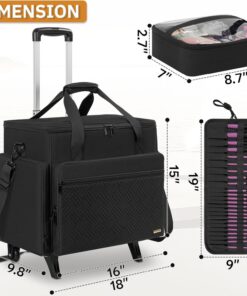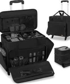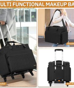 【Large Capacity & Multiple Pockets】:The size of this rolling makeup bag is 16.55″ x 9.85″ x 14.18″, which is large enough to hold all your makeup tools. It is also designed with dust-proof makeup brush slots, mesh pockets and additional pockets, providing ample internal storage space for cosmetics, jewelry, hair tools, etc