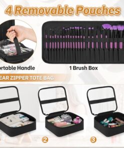 【4 Portable Small Makeup Bags】:This professional makeup bag comes with 3 independent transparent zipper boxes and 1 independent brush box, which can be used to classify and store your cosmetics, skin care products, nail polish, etc., while keeping them clean and easy to access