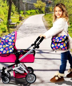 STORAGE AND ACCESSORIES: Equipped with a storage basket and a matching diaper bag, Your child can adjust the height and orientation of the stroller, Easy Assembly making it the perfect jogging stroller for little ones this stroller keeps your child’s doll essentials organized. It’s a complete playset that enhances the interactive and imaginative experience. MEASURES 20″L 13″W 22″ H, Comes with a carrying bag.