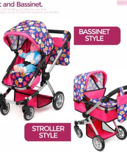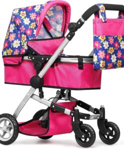 VERSATILE FEATURES: This Baby Toy Doll Stroller hold up to 18″ inches in height a Doll and boasts a cushioned bed for your child’s doll Our baby doll stroller comes with swiveling wheels for easy maneuverability and an “Soft Grib” adjustable handle to suit your child’s height. The convertible seat can transform into a bassinet, offering various play scenarios 2-in-1 Convertible Doll Luxury Stroller + Bassinet – Realistic Fully Functional Reversible Deluxe Doll Coach Carriage.
