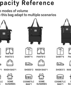 1. Special Structure with Expandable Design – The capacity of the travel bag can be expanded from 28L to 43L and then to 58L. When you use it for small stoarge of 28L, please close the 2 zippers on the bag. If you need it to hold more staffs, you can open the side zippers to make it to 2 layer high of 43L and 3 layer high of 58L. After enlarge the bag, you can install the wheels for easy-moving. Please check our pictures for detailed illustration for adjustments. If you’re confused with the expansion, just feel free to contact us for help.