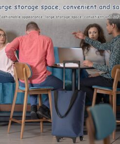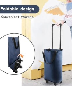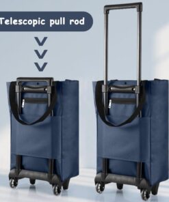 Foldable Shopping Trolley with Wheels – 2 in 1 Reusable Grocery Tote Bag, Dark Blue