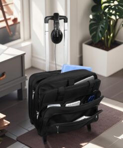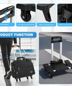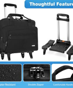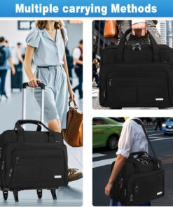 GMAK Rolling Laptop Bag for Women Men, Wheeled Briefcase with Removable Trolley, 17.3 Inch Laptop Bag Overnight Roller Case Computer Bags for Work/Business/Travel Carry On Bag with Wheels, Black