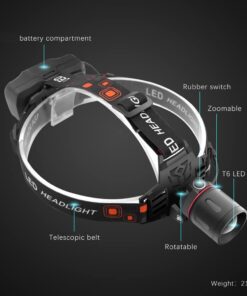 Zooming out the head torch green LED to be used as a spot light, which can reach out as far as 250 Yards. Zooming in as a flood light provides a wide view when you are searching targets. Free your hands, perfect green lights headlamp for night hunting.