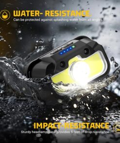 【Waterproof and Stable】Our rechargeable headlamp features an impressive IPX4 waterproof rating, ensuring it can withstand rain or snow. Its high-quality shell is meticulously sealed and leak-proof, making it suitable for both indoor and outdoor use. Stay prepared any adventure, no matter the weather conditions.