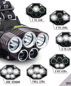 NEW 5x T6 LED + 2x Q5 LED Headlamp Maximum brightness up to 120000 Lumens