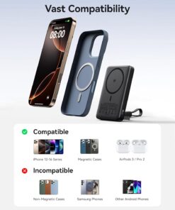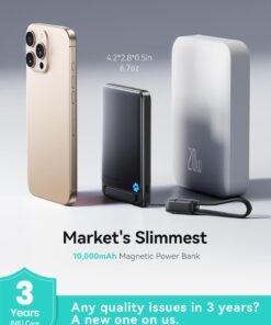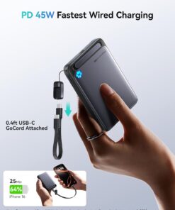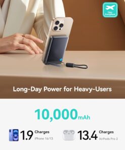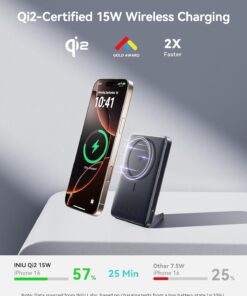 INIU for MagSafe Portable Charger, Qi2 Certified, Slimmest 45W 10000mAh Magnetic Power Bank, with USB C Cable & Stand, Fast Charging MagSafe-Compatible Battery Pack for iPhone 17 16 15 14 13 12 Only