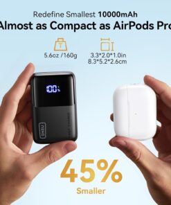 INIU Redefine Smallest 10000mAh: INIU’s latest 10,000mAh power bank, featuring the industry-first TinyCell Pro battery, redefines the industry standard for the smallest size. It’s 45% smaller than the standard 10,000mAh—seeing is believing!