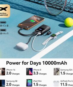 Power for Days 10000mAh: If you’re looking for a power bank that covers daily use, short trips, and business travel, 10,000mAh is the perfect choice. It can charge your iPhone 16 twice, your Samsung S24 1.5 times, and your iPad mini 1.5 times.