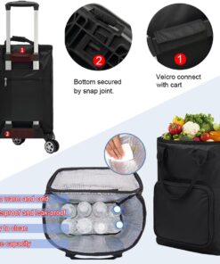 Insulated Replacement Bag for Grocery/Shopping Cart, for Trolley Cart frame, 12.6inx8.7inx17.3in (Black)