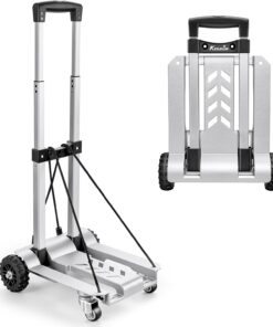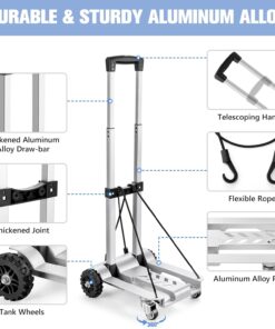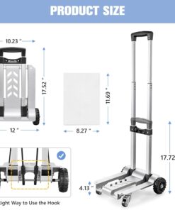 【Convenient and Easy to Store】The foldable hand truck can be easily folded up in seconds, is small in size, and is lightweight (5 lbs). Folds to fit in a backpack, in the car, under the bed, in a closet, or in the garage. Folded Dimensions: 17.7 x 10.63 x 4.13 inches