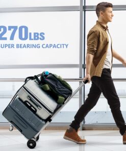 【Aluminum Alloy Material】Folding hand truck is made of 100% thickened aluminum alloy material, which makes the luggage cart stronger and more durable than other plastic panel carts, and has a longer service life. The maximum load-bearing capacity is 270 lbs, and the pull is stable when moving heavy goods, and not easy to shake