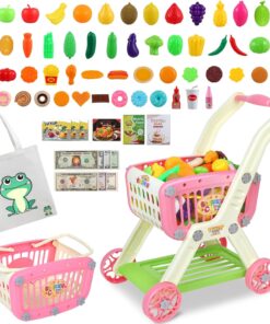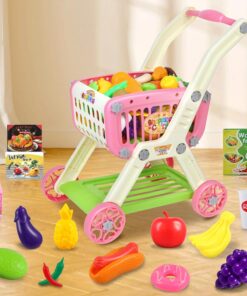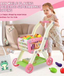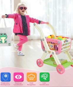 【Creativity and Imagination】Kids can role play shopping game, fill the toddler grocery cart and push it around. It is great for creative and imaginative playing, then improves kid’s motor skill development, imagination, hand-eye coordination and counting ability, and helps them to learn and recognize variety of food.
