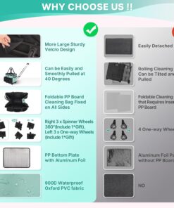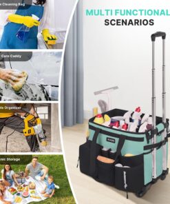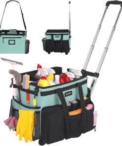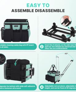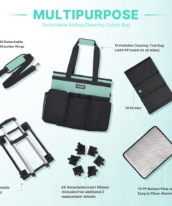 【90 °& 40 ° Adjustable Rolling Cleaning Caddy Bag】Rolling cleaning bag comes with 1 detachable shoulder strap and fixed double handles, both padded, it also comes with a detachable cart with 4 detachable inserted wheels (2 spinner wheels 360 °, 2 one-way wheels), and 2 extra wheels for later replacement. A 90 °& 40 ° adjustable pull bar is more agile than a traditional trolley and provides a more portable service