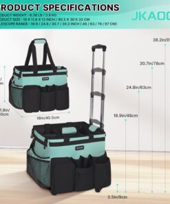 【Collapsible Support Panel, Quick Storage】The JKAOO rolling cleaning caddy bag has foldable PP boards on both sides, and support boards on all sides, and the shape is spacious and sturdy. It features 4 large Velcro buckles on bottom to secure the bag to the pole platform and bag side’s cross-bar fixed design to prevent collapsing or tilting when filled with cleaning tools. The 4-level telescopic double rod handle can be adjusted to a maximum of 38.2 inches / 97 cm to meet push-pull requirements