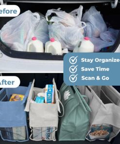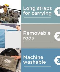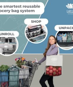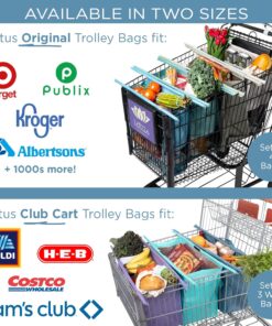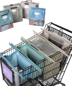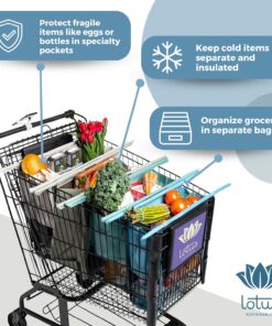 Lotus Trolley Bags for Shopping Carts – Reusable Shopping Bags, Grocery Bags with Insulated Cooler & Egg/Wine Holder, Foldable, Washable Grocery Cart Bags, Multi-Use Tote Bags (Set of 4 – Earth Tones)