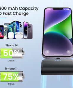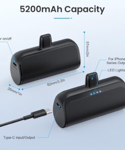 Mini Portable Charger Power Bank for iPhone,5200mAh Portable Phone Charger, Ultra-Compact PD Fast Charging Battery Pack Compatible with iPhone 14/14 Plus/Pro Max/13/12/12 Mini/11/XS/XR/X/8/7/6/6s