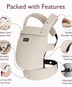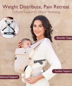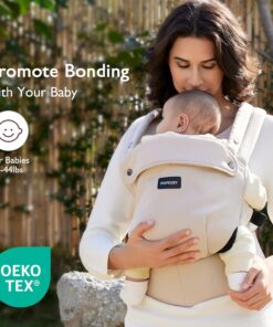 Momcozy Baby Carrier – Ergonomic, Cozy and Lightweight Carrier for 7-44lbs, Effortless to Put On, Ideal for Hands-Free Parenting, Enhanced Lumbar Support, Purehug for Infant to Toddler, Khaki