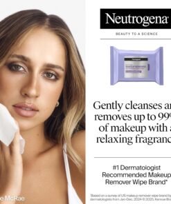 Neutrogena Night Calming Makeup Remover Face Wipes, Nighttime Cleansing Towelettes Remove Sweat, Dirt & Makeup & Calms Skin, Hypoallergenic, 100% Plant Based Cloth, 50 Count (2 Packs of 25)