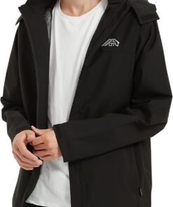 OTU Men’s Lightweight Waterproof Hooded Rain Jacket Outdoor Raincoat Shell Jacket for Hiking Travel