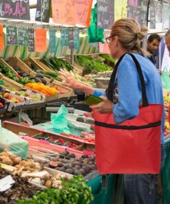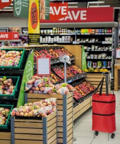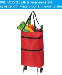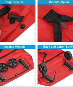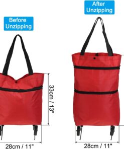 PATIKIL 13-18 Inch Foldable Shopping Bag with Wheels, Collapsible Trolley Bags Portable Grocery Bags Travel Bags for Vegetable Fruit Clothing Storage, Red