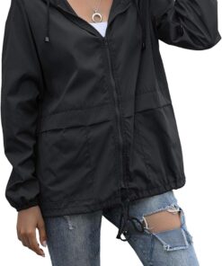 PESION Women’s Waterproof Raincoat Lightweight Rain Jacket Hooded Windbreaker with Pocket for Outdoor