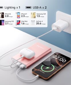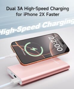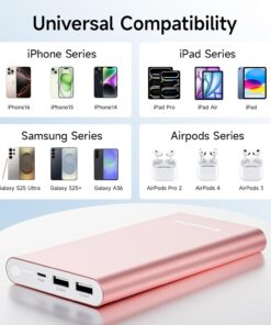 Pilot 4GS Portable Charger 12000mAh Fast Charging Power Bank Dual 3A High-Speed Output Battery Pack Compatible with iPhone 16 15 14 13 12 11 and More (Rose Gold)