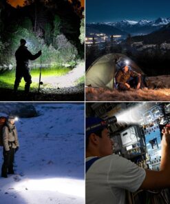 PREMIUM MATERIALS & IPX6 WATERPROOF: LED headlamp rechargeable is crafted from premium aircraft-grade alloy with a type 3 hard-anodized anti-abrasive coating, has strong fuselage and enhances heat dispersion. Built to withstand outdoor challenges, the head flashlight is water-resistant with an IPX6 rating, ensuring reliable performance even in wet conditions, very suitable for camping, mountaineering, hunting, running, and other outdoors