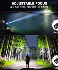 3 MODES & ADJUSTABLE FOCUS: Our head lights for forehead provide 3 modes: high/low/strobe mode, you can choose the appropriate lighting mode according to your needs. It also added a blue strobe light on the battery cover, which can be used as a night warning. Also, you can choose the light range from the spotlight to the floodlight by stretching the head of the head light. The spotlights irradiation distance up to 3280 feet/1000 m